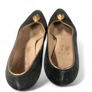 Vintage Salvatore Ferragamo Black Suede Block Kitten Heels size 8 B