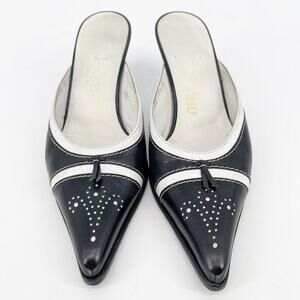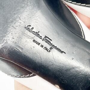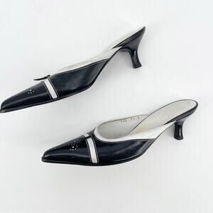Vintage Salvatore Ferragamo Black White Brogue Detail Pointed Toe Mule size 7.5