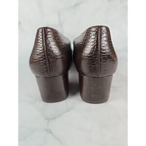 Vintage Salvatore Ferragamo Brown Snakeskin Leather Block Heel Pumps size 9 2A