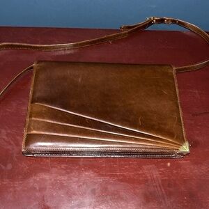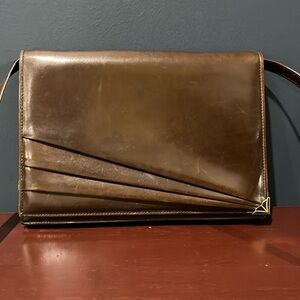 Vintage Salvatore Ferragamo Chocolate Brown Leather Clutch w/ Detachable Strap