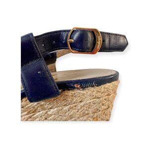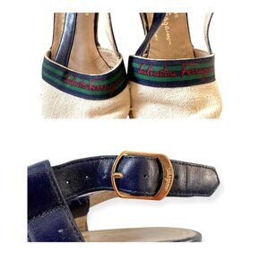 Vintage Salvatore Ferragamo Boutique Espadrille Wedge Sandals – Navy & Canvas with Logo Ribbon, Made in Italy