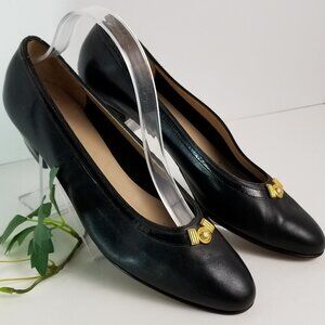 Salvatore Ferragamo Pumps. These classic authentic pumps are perfect for the sophisticated woman. Excellent condition and well taken care of. Size: 8.5 2A. Color: Black. Size tends to run a little small. These pumps are narrow—3 in at the widest width of footbed. Gold hardware. Heel height: 1.5 in, Low heel height for all day comfortable wear.