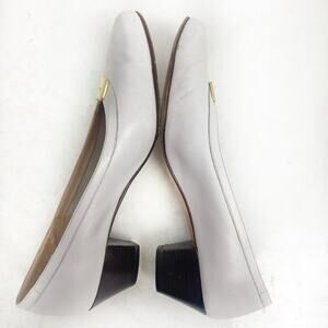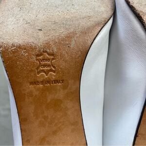 Great vintage condition! White genuine leather heels. Almond shaped toe with a thick stacked low heel. Minor imperfections on leather back of heels, all shown in photos.