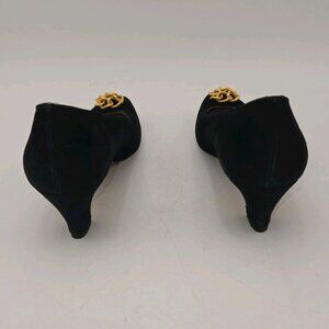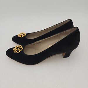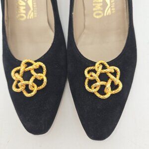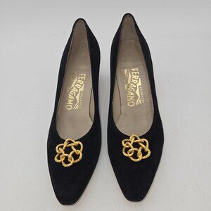 Vintage Salvatore Ferragamo Women Shoes Black Suede Heel Gold Flower 6.5 AA Edie