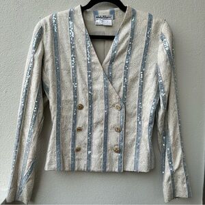 Pre-owned authentic Vintage Salvatore Ferragamo Women’s Beaded Sequins Blazer Jacket Size Small.