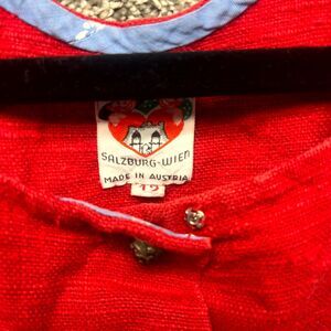 Vintage Salzburg-Wien Dress Womens 12 Red Blue Floral Folk Classic Button Front.