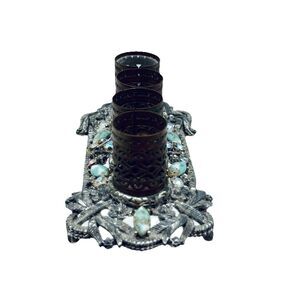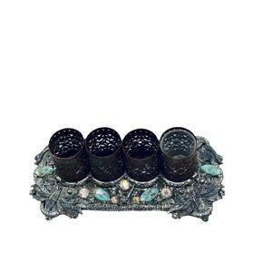 Vintage Sam Fink Jewel Rhinestone & Stone Vanity 4 Lipstick Holder Caddy