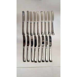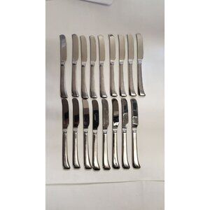 VTG Sambonet Stainless Steel Butter Knives are brand new spreader flatwares, featuring a sleek silver finish. Ideal for elegant dining experiences.