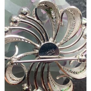 Vintage Sameo Sterling Silver Swirls and Rhinestone Brooch