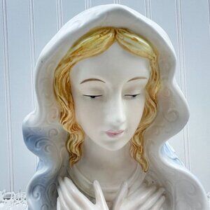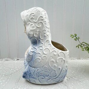 Vintage Samson Import Relpo Porcelain Praying Madonna Planter Blue & White 10"