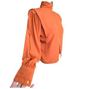 Vintage San Andre Blouse Orange High Collar & Shoulder Pads Scarf Neck 6P HS158