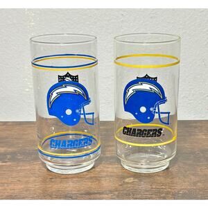Vintage San Diego Chargers NFL Helmet Logo High Ball Drink Glasses Pair of 2