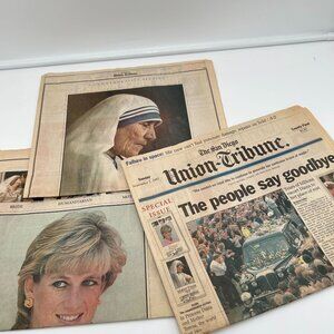 Capture the essence of history with this vintage newspaper collection, featuring iconic tributes to Princess Diana and Mother Teresa. A unique addition to any collection, these newspapers provide a nostalgic look back at momentous events from September 7, 1997, evoking the emotions of that era.
