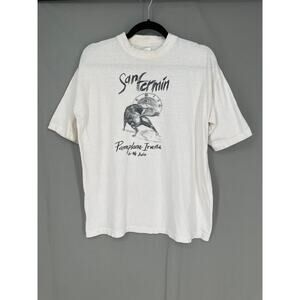 Vintage San Fermin Shirt Large White Running Bulls Pamplona Spain Graphic Tee