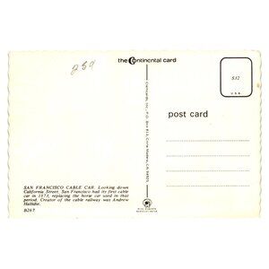 This vintage Continental Card postcard captures the iconic San Francisco cable car on California Street. A unique addition to any collection.