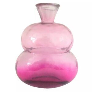 This incredible piece is an ombre cranberry color in good condition for its age. It has dents and bubbles which are indicative of hand blown glass. I believe it was made in the 1970s in Spain. The design is very Mid Century Modern. I have no stopper though this makes a beautiful vase or standalone art piece. It is very heavy and weighs nearly 5 pounds. The approximate measurements are 11.25" tall, 8.5" at the widest point and 4.5" deep.