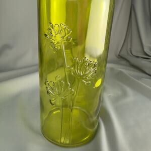 San Miguel Green Glass Vase Recycled Bottle Embossed Flowers Retro Decor