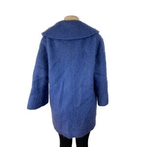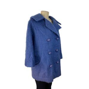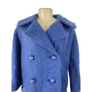 This Vintage Women's Blue Wool Blend Double-Breasted Coat features a timeless design and sophisticated style. Made of a soft wool blend, it offers a cozy, warm feel. Its vibrant blue color, double-breasted button closure, and tailored fit make it a versatile wardrobe addition. Fully lined for extra comfort, it's perfect for colder seasons. Ideal for formal and casual settings alike.