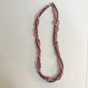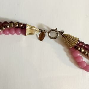 Vintage Sandra David Beaded Strand Necklace Mauve Pink Barbie Goldtone Statement