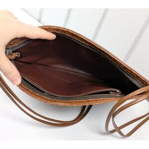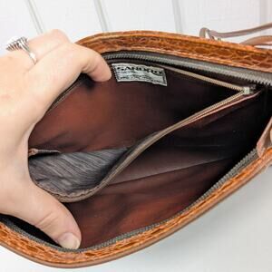 Vintage Sandro Brown Leather Faux Reptile Rectangular Shoulder Bag *READ