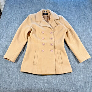 Vintage Sandro Pea Coat Women’s Camel 100% Wool Made in Russia 1990s Size S