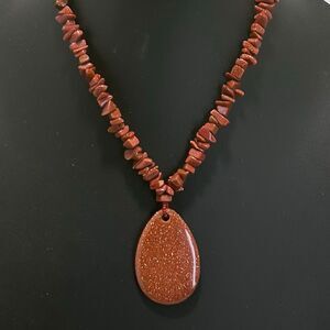 Vintage Sandstone Beaded Necklace Women's OS Brown Chip Beads Teardrop Pendant