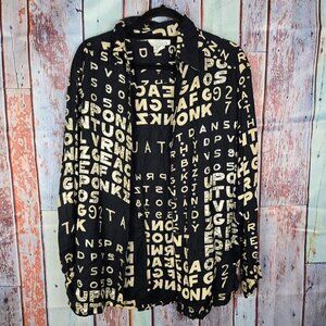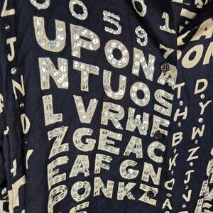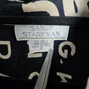 Vintage Sandy Starkman Black White Sequins Embellished Word Number Print Blouse