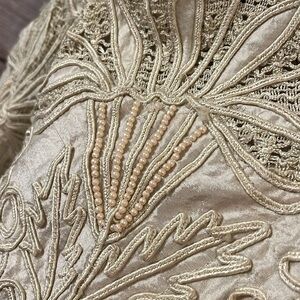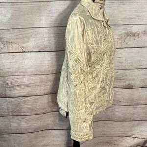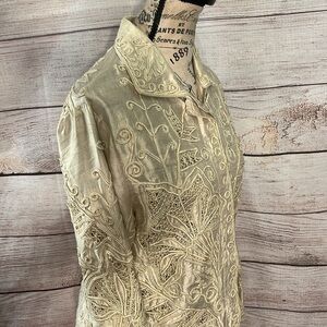 Vintage Sandy Starkman Silk Blouse Embroidered Beaded Appliqués Cut Work Small
