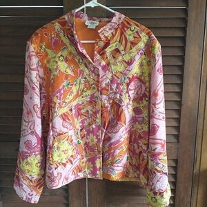 Vintage Sandy Starkman Silk Sequin Top Jacket Size Large Orange Pink