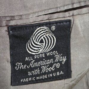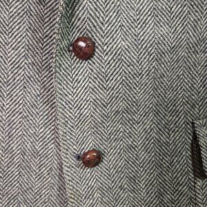 Tags/keywords: men's blazer, wool jacket, herringbone blazer, professional wear, tailored blazer, USA made, formal jacket, classic style, men's fashion, wool fabric, tailored fit, gray blazer, old money, preppy, vintage men's blazer