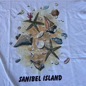 Vintage Sanibel Island Florida Souvenir T-Shirt. Women’s plus size 3X. Anvil tag, made in USA. Featuring a graphic of various sea shells on the sand, including starfish, coral and conch shells. Would make an awesome oversized beach coverup!!