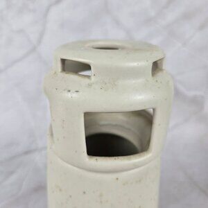 Ceramic pottery candleholder in the shape of a lighthouse. The top is removable. A real or battery operated candle can be used. Light will shine out through the holes in the top piece making it look like a real lighthouse. Seabirds have been hand painted on the bottom half. A cool piece for someone that likes lighthouses or the sea.
