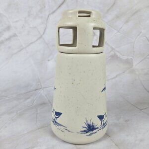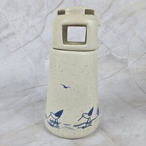 Vintage Sanibel Pottery 1984 Lighthouse Candle Holder Seabirds Cream Blue