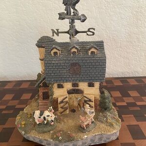 Vintage Sankyo Barnyard Farmhouse Rotating Rooster Weathervane 10”H Music Box