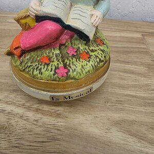 Vintage Sankyo Rotating Music Box "Little Girl Reading" Figurine