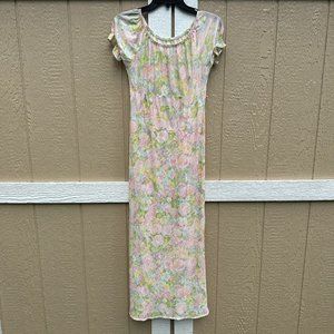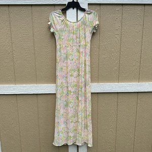 Vintage Sanmark Pink Floral Full Length Nylon Nightgown Granny Womens Size Small