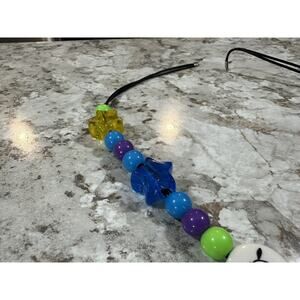 This is a unique vintage Sanrio Pochacco Street Dog Extraordinaire necklace that will add a touch of nostalgia to your collection. The necklace is beautifully crafted with colorful plastic beads and does not have a clasp, making it easy to wear and style once you put a clasp on. It features the lovable character Pochacco from the popular TV show Hello Kitty, making it a must-have for fans of the franchise.