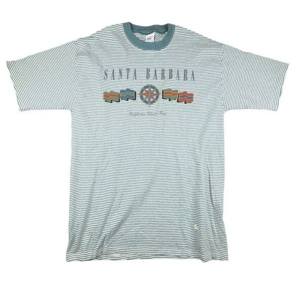Vintage Santa Barbara T Shirt Mens Size Large 90s Travel Striped Made In USA