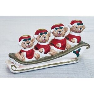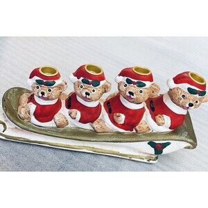 #VintageChristmas #SantaBears #ChristmasSleigh #CandleHolder #HolidayDecor #RetroChristmas #BearDecor #VintageHoliday #ChristmasCenterpiece