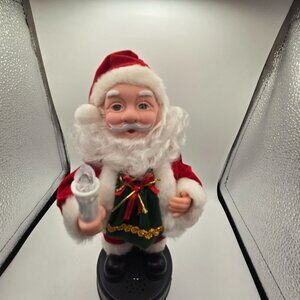 Vintage Santa Claus Animated Figurine With Light-Up Candle Musical Jingle Bells