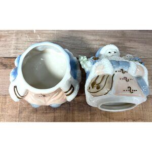 The vintage Santa Claus ceramic trinket box is a charming decorative piece. Its intricate design and pastel colors make it suitable for holiday decor or as a collectible item.