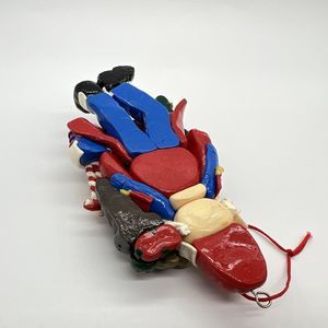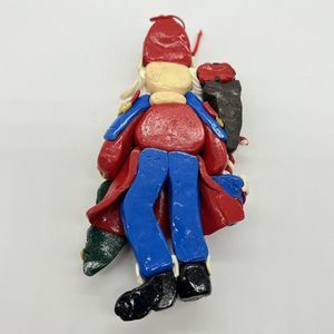 Vintage Santa Claus Christmas Ornament Glazed Clay Dough 5.5” Handmade Detailed