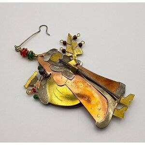 Vintage Santa Claus Christmas Tree Ornament Brass Copper Mixed Metals Folk Art