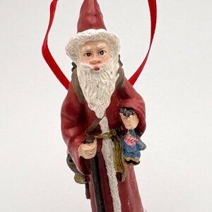 Vintage Santa Claus Christmas Tree Ornament Jolly Old St Nick Toy Sack