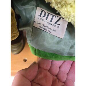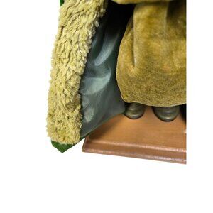 This exquisite Ditz Designs Santa Claus figurine serves as an elegant addition to holiday decor, featuring a plush green coat and a traditional red hat. Standing on a wooden base, it adds a distinguished touch to any festive setting. A true collector's item, rich in detail and craftsmanship.