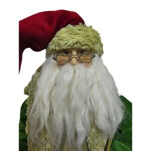 Vintage Santa Claus Ditz Designs Woodsy and Rustic Green Coat & Red Hat
