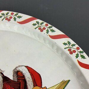 Vintage Santa Claus Elves Christmas Metal Tray Holly Candy Cane Border Hong Kong