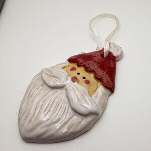 This ceramic Santa ornament adds holiday cheer to any Christmas tree. Its charming design and ribbon make it easy to hang.