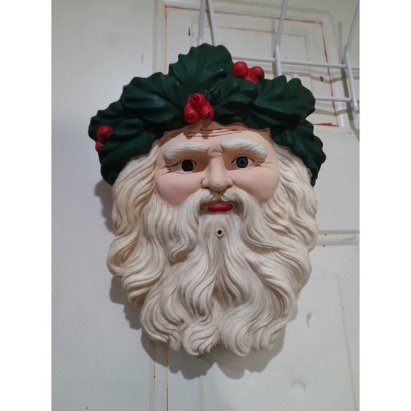 Vintage Santa Claus Face Door Wall Hanger Decor Motion Activated Plays Music,