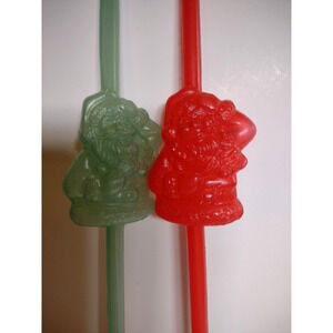 Add a touch of vintage charm to your holiday celebration with these Santa Claus Red & Green Plastic Straws. Made in Hong Kong in the 1960s, these straws feature a classic blow mold design of jolly Saint Nick in his traditional red and green suit. Perfect for Christmas parties or as a unique addition to your holiday collectibles, these straws are sure to delight guests of all ages. They are a fun and festive way to sip your favorite beverage. Vintage soft plastic 8.5" tall UNUSED old stock Santa Claus straws.